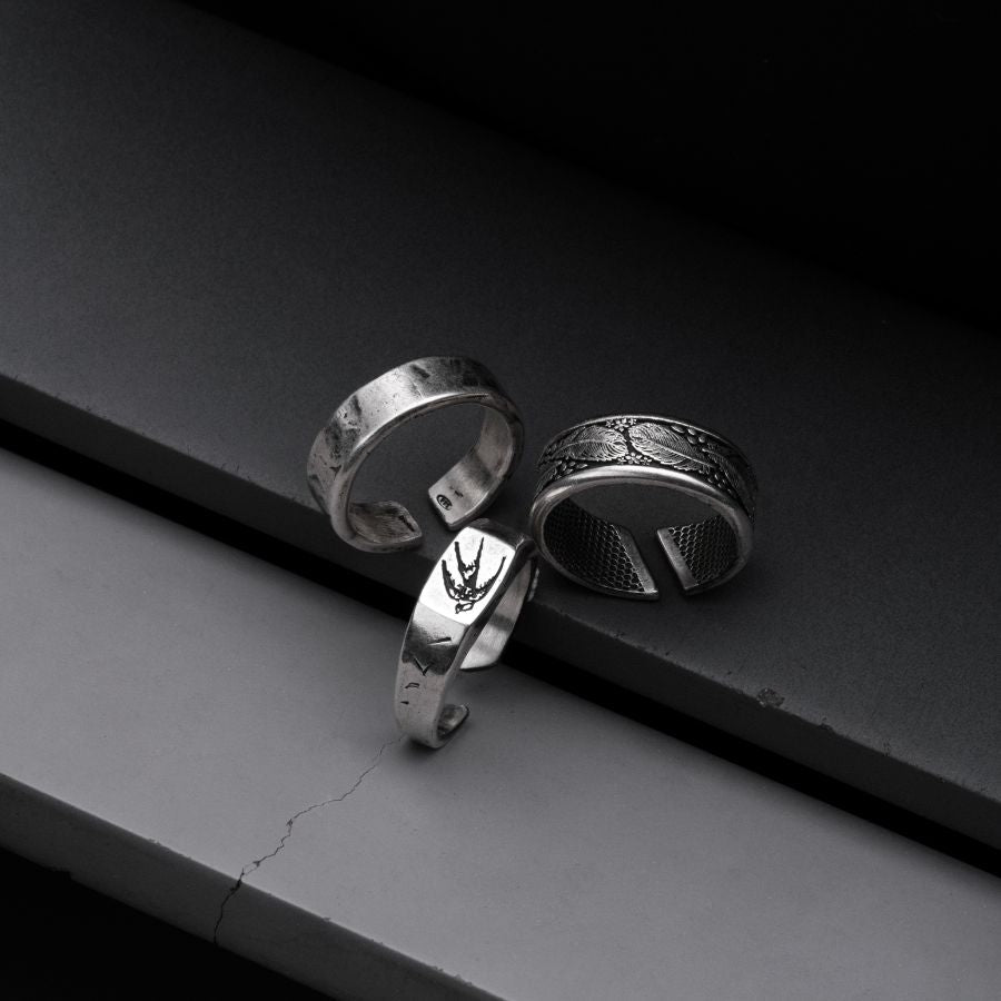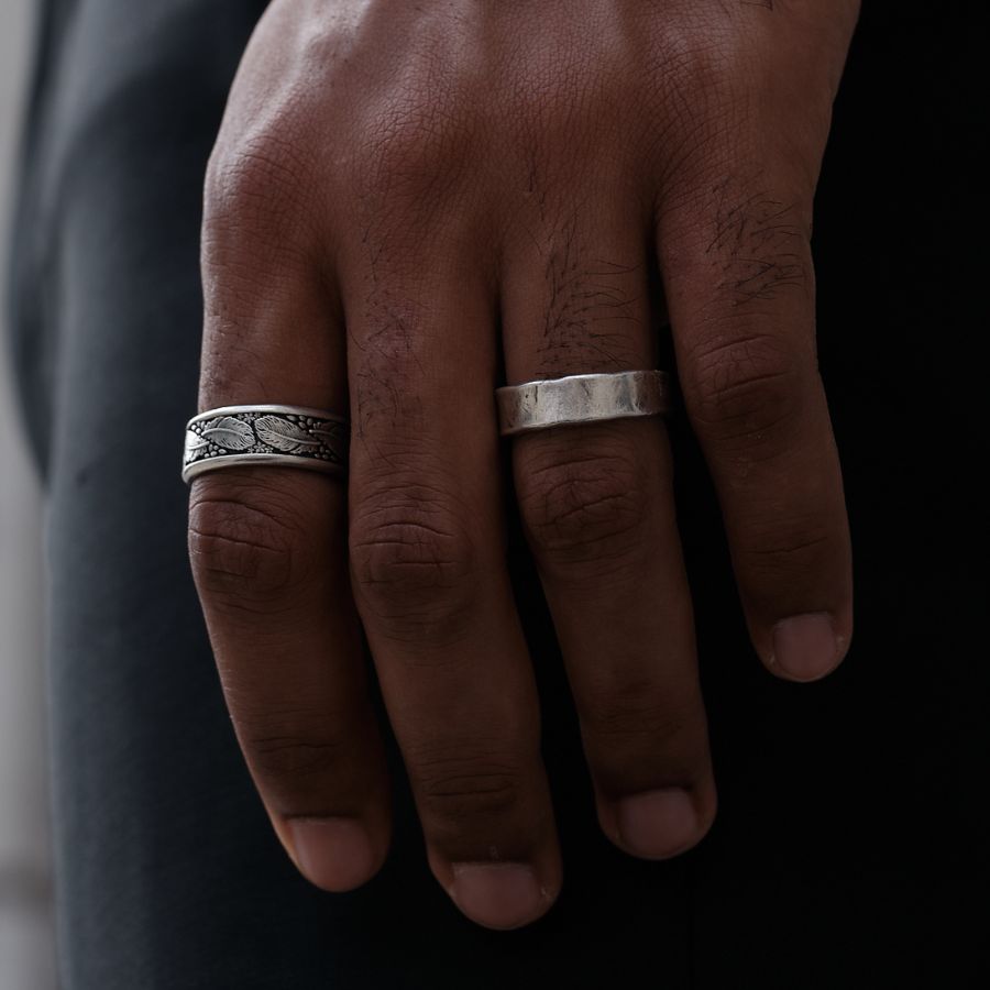 Unsere Ringe sind so designt, dass sie dein Outfit perfekt ergänzen – ohne zu überladen. Die gehämmerte Optik verleiht ihnen Charakter, während das schlichte Design zu jedem Outfit passt.