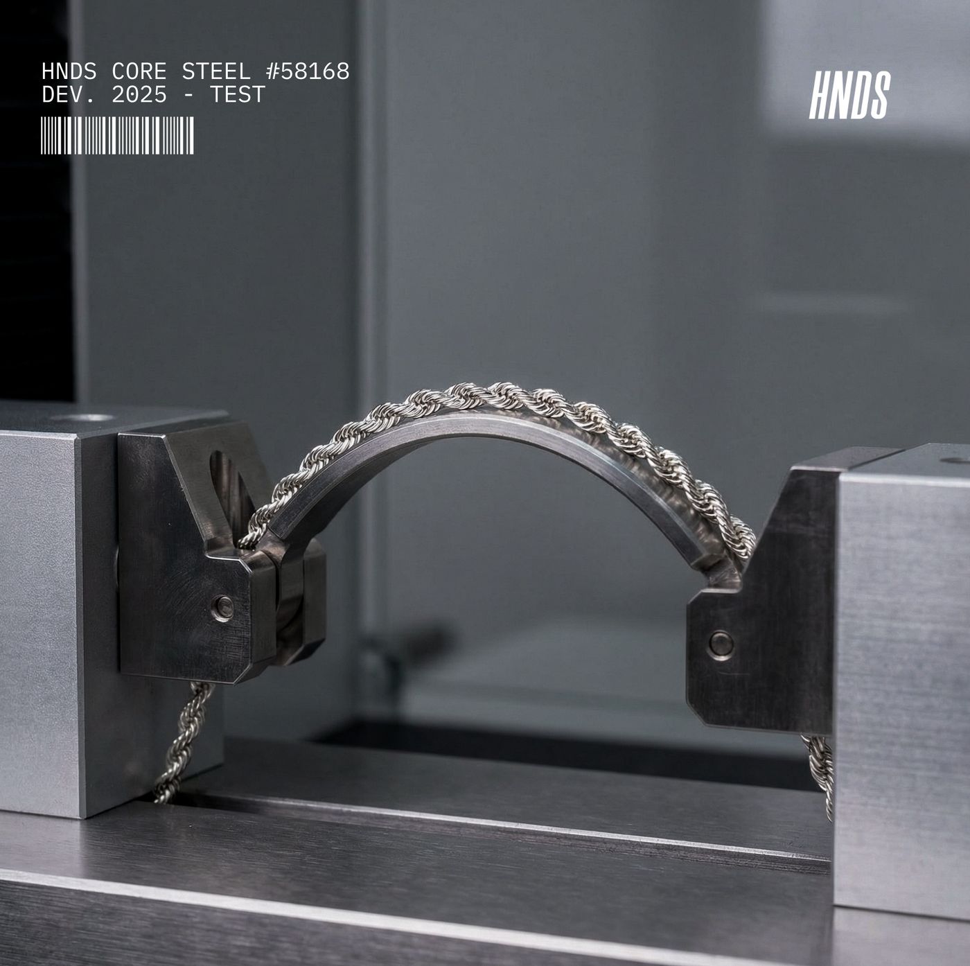 Die Forge Necklace ist aus HNDS Core Steel (304 Edelstahl) gefertigt – einem Material, das für dauerhafte Belastung und täglichen Einsatz entwickelt wurde.