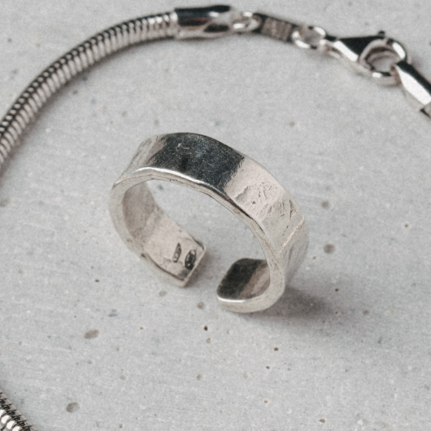 Propre mais toujours excitant : l'aspect martelé à la main fait de la bague une pièce vraiment unique.